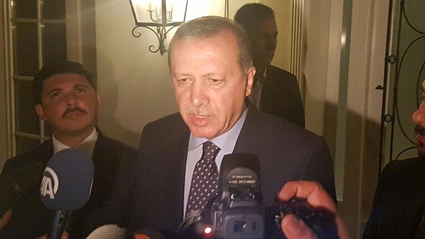 Cumhurbaşkanı Erdoğan, Anadolu Ajansı'nın olduğu basın mensuplarına açıklama yaptığı sırada