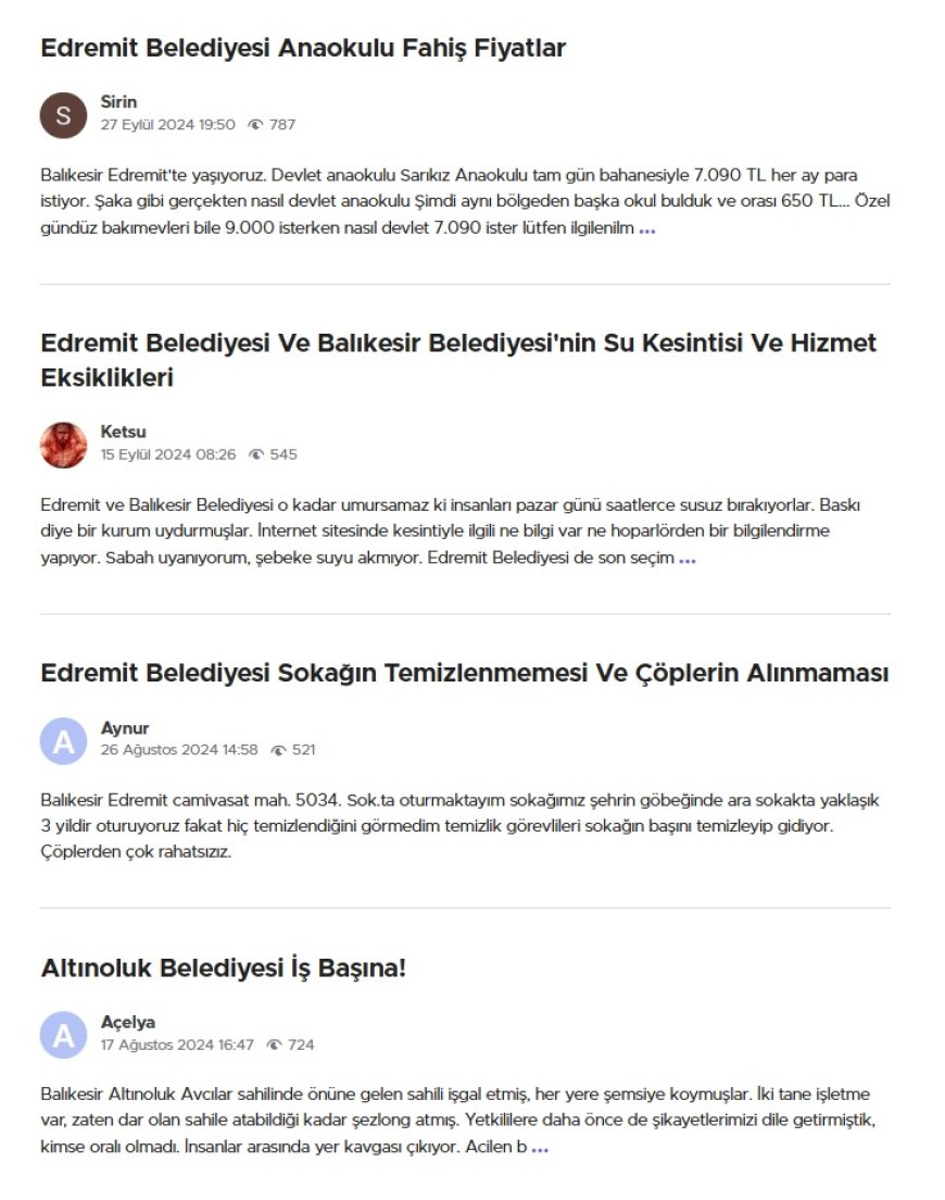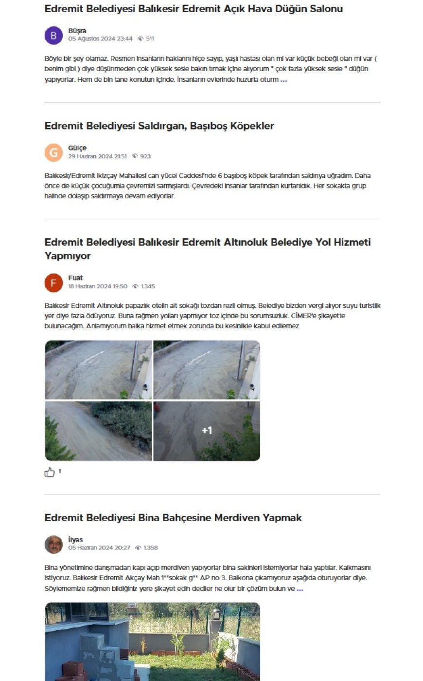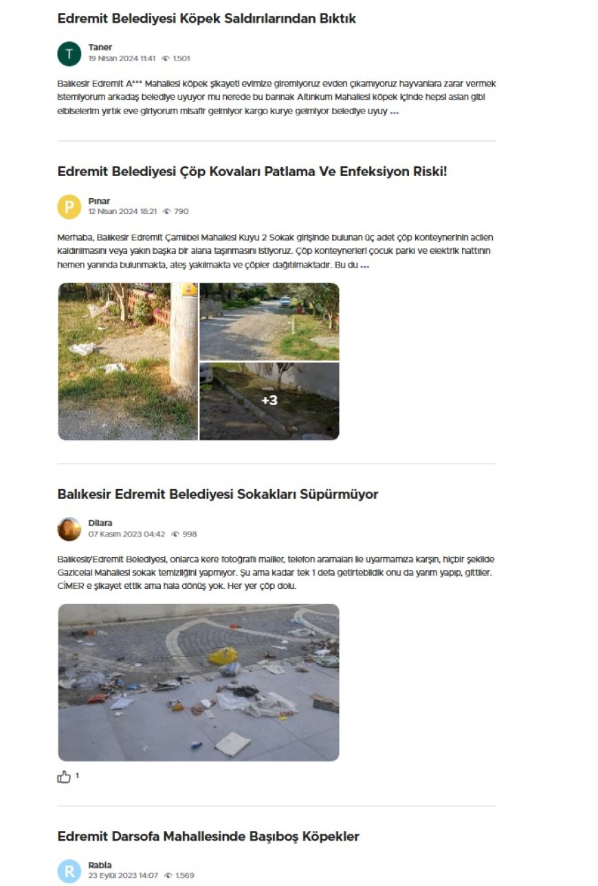 Balıkesir’in gözde sahil ilçelerinden Edremit’te yaşayan vatandaşlar, yerel yönetimlerle ilgili artan şikayetlerini sosyal medyada ve resmi platformlarda duyurmaya devam ediyor. Vatandaşların en sık dile getirdiği sorunlar arasında güven kaybı, siyasi ayrımcılık, belediyecilik hizmetlerinin yetersizliği ve kamu güvenliğine dair ciddi şikayetler yer alıyor.