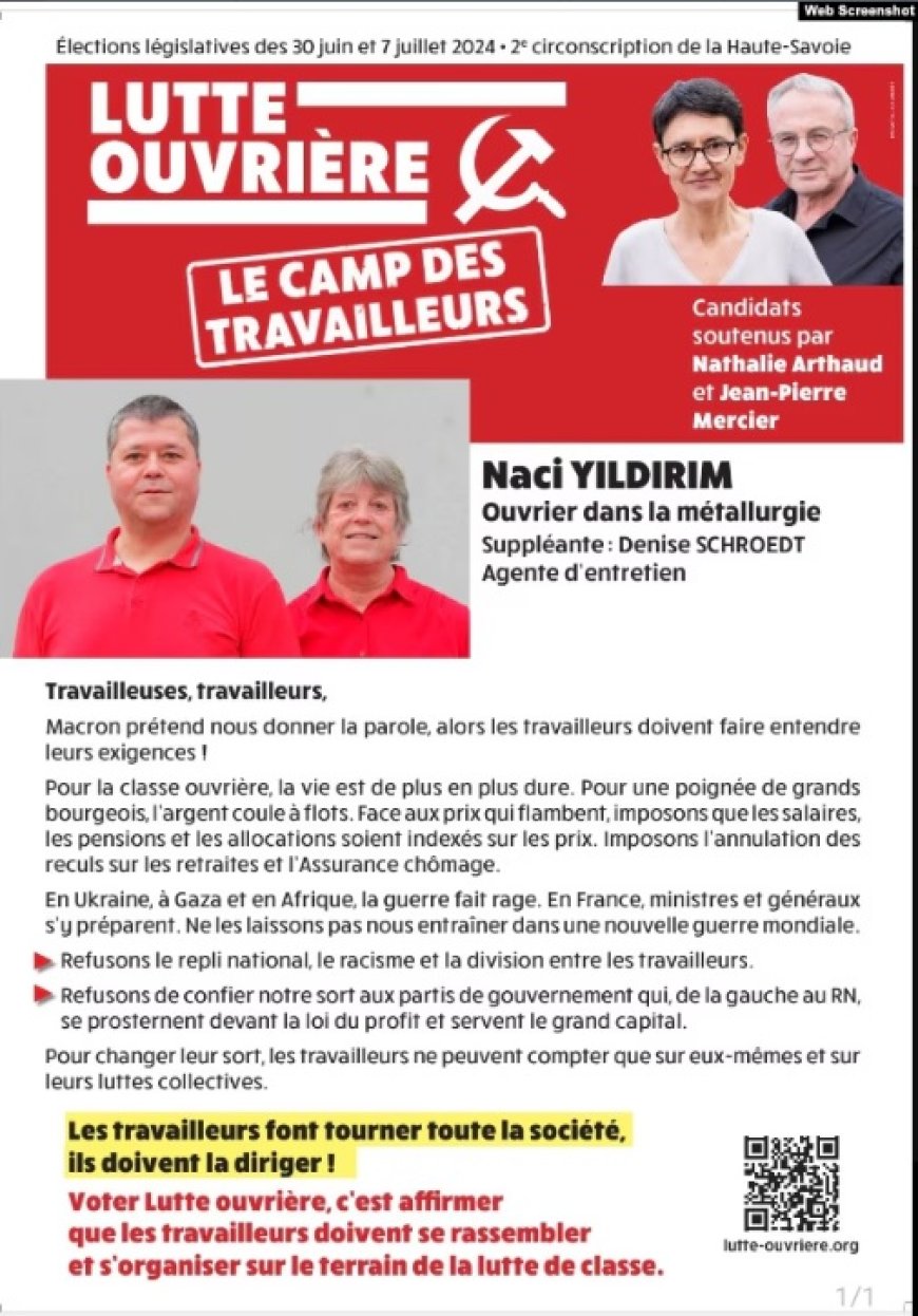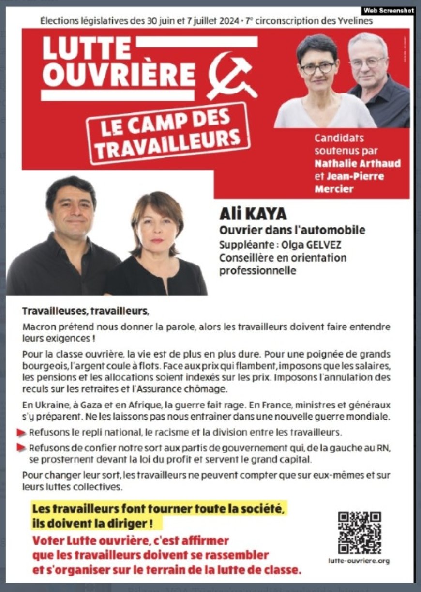 Radikal sol parti “Lutte Ouvriere /İşçi Mücadelesi’nde” siyaset yapan Ali Kaya, Yvelines seçim bölgesinden adaylığını koydu. Yine LO’da siyaset yapan Naci Yıldırım da, Haute Savoie bölgesinden aday oldu.