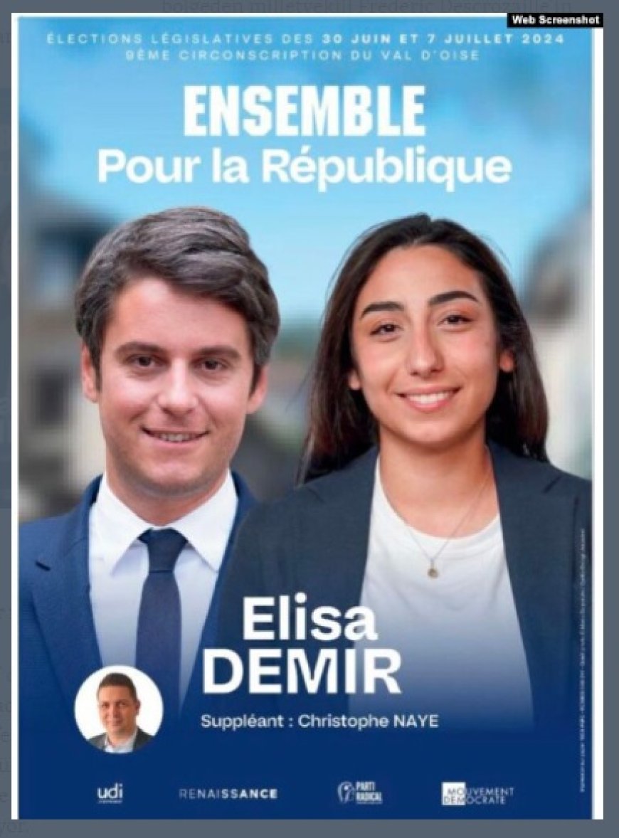 İktidar partisinin gösterdiği ikinci Türk kökenli aday, Mardinli göçmen bir ailenin kızı olan 23 yaşındaki Elisa Demir. Emlakçılık yapan Demir de Türkler’in yoğun yaşadığı Paris’in kuzey banliyölerinden Gonesse ve Goussainville kentini de içine alan Val d’Oise bölgesinden adaylığını koydu.