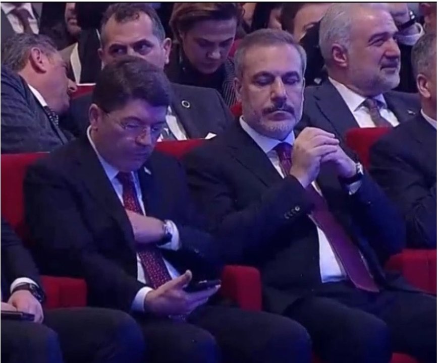 Eski MİT Başkanı Hakan Fidan’ın, Adalet Bakanı Yılmaz Tunç’un telefonuna bakışı sosyal medyanın gündemine oturdu.