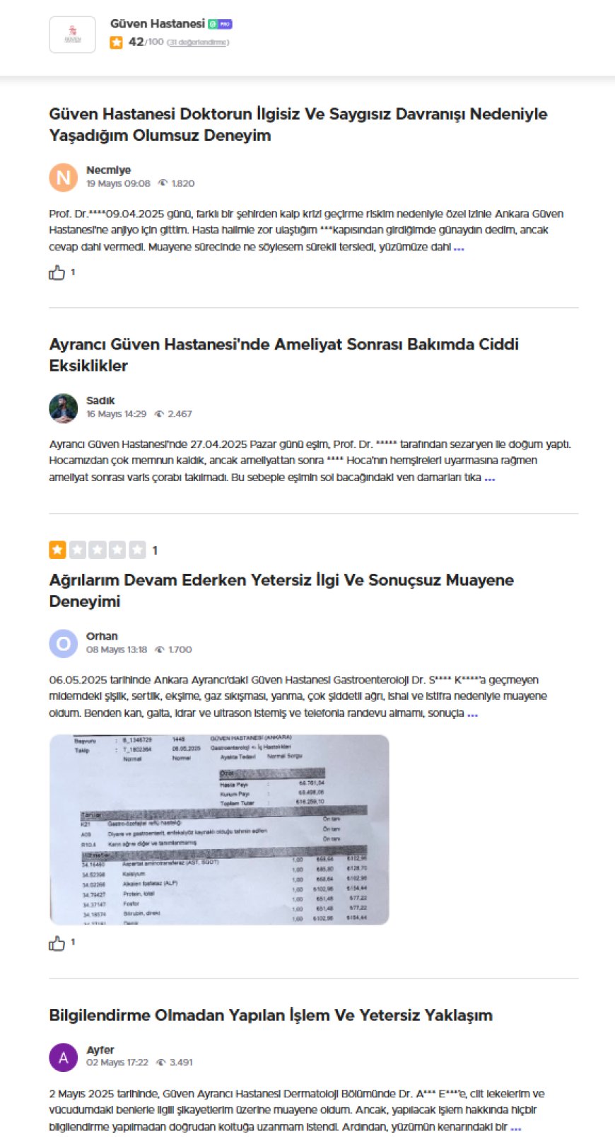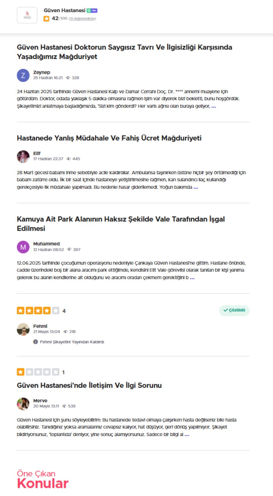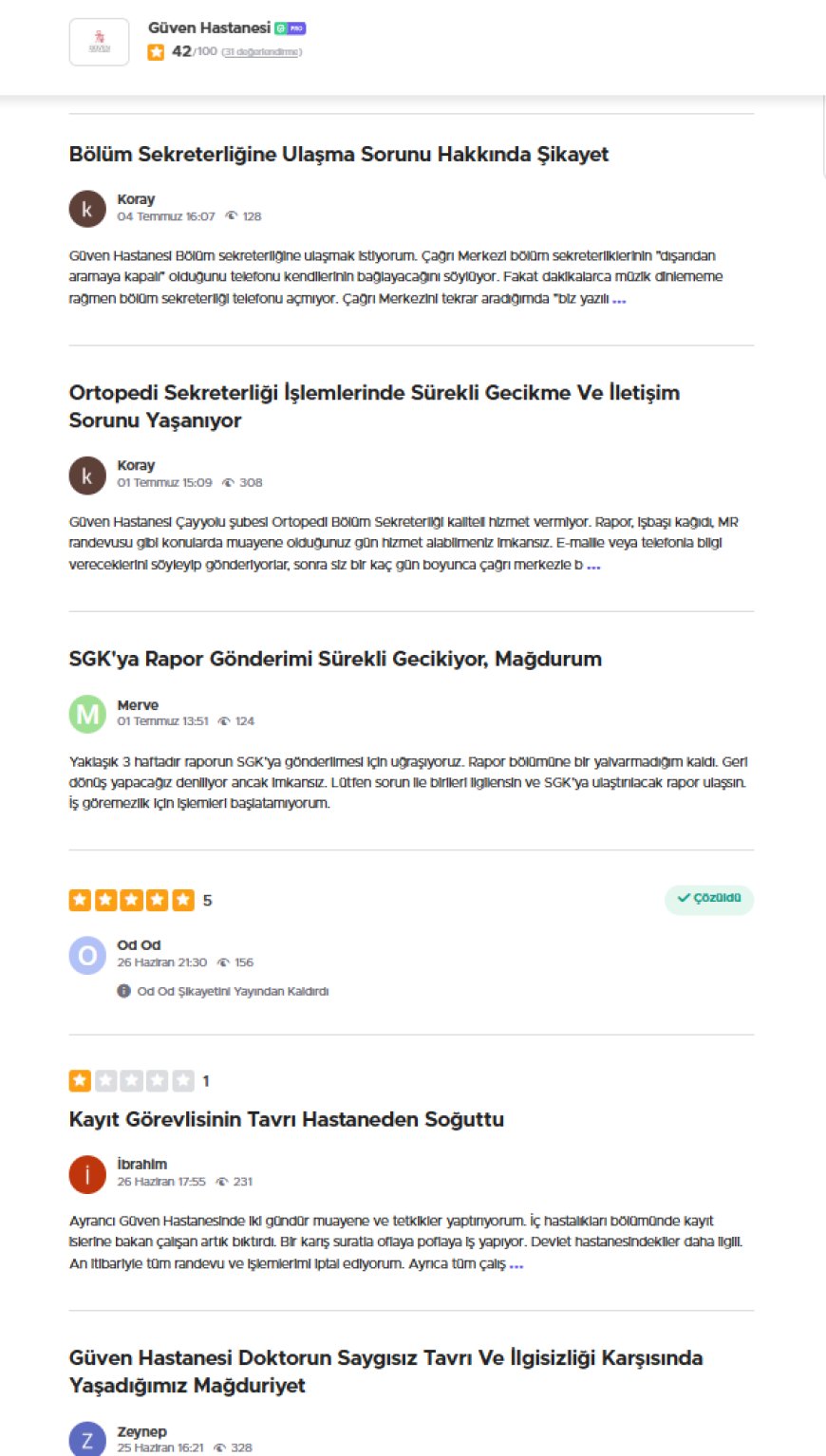 Güven Hastanesi hakkında artan hasta şikayetleri, iletişim kopukluğu, ilgisiz doktor tavırları, ameliyat sonrası ihmal ve şeffaf olmayan ücretlendirme gibi başlıklarla gündeme oturdu.